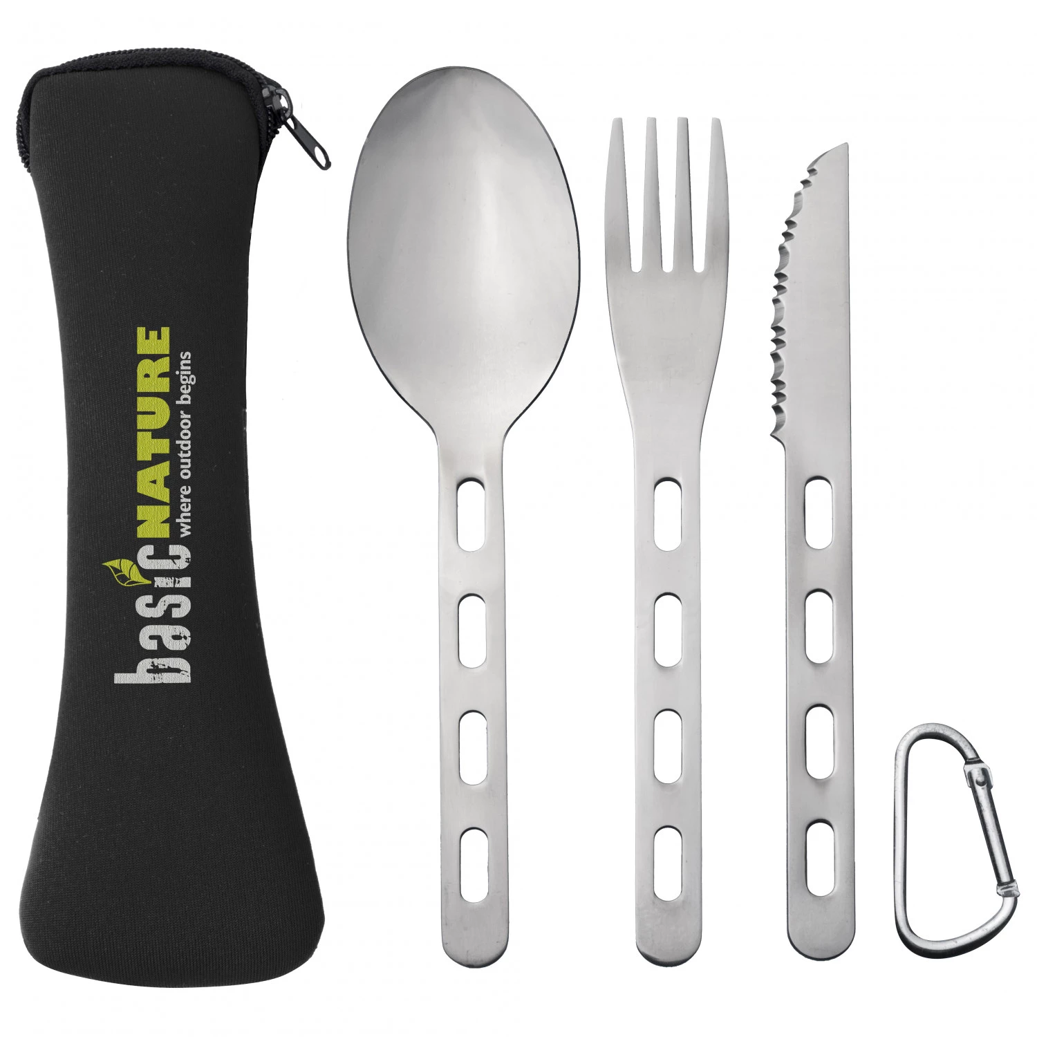 | Contenu de la livraison | Cuillère, fourchette, couteau, pochette, en, néoprène, mousqueton |